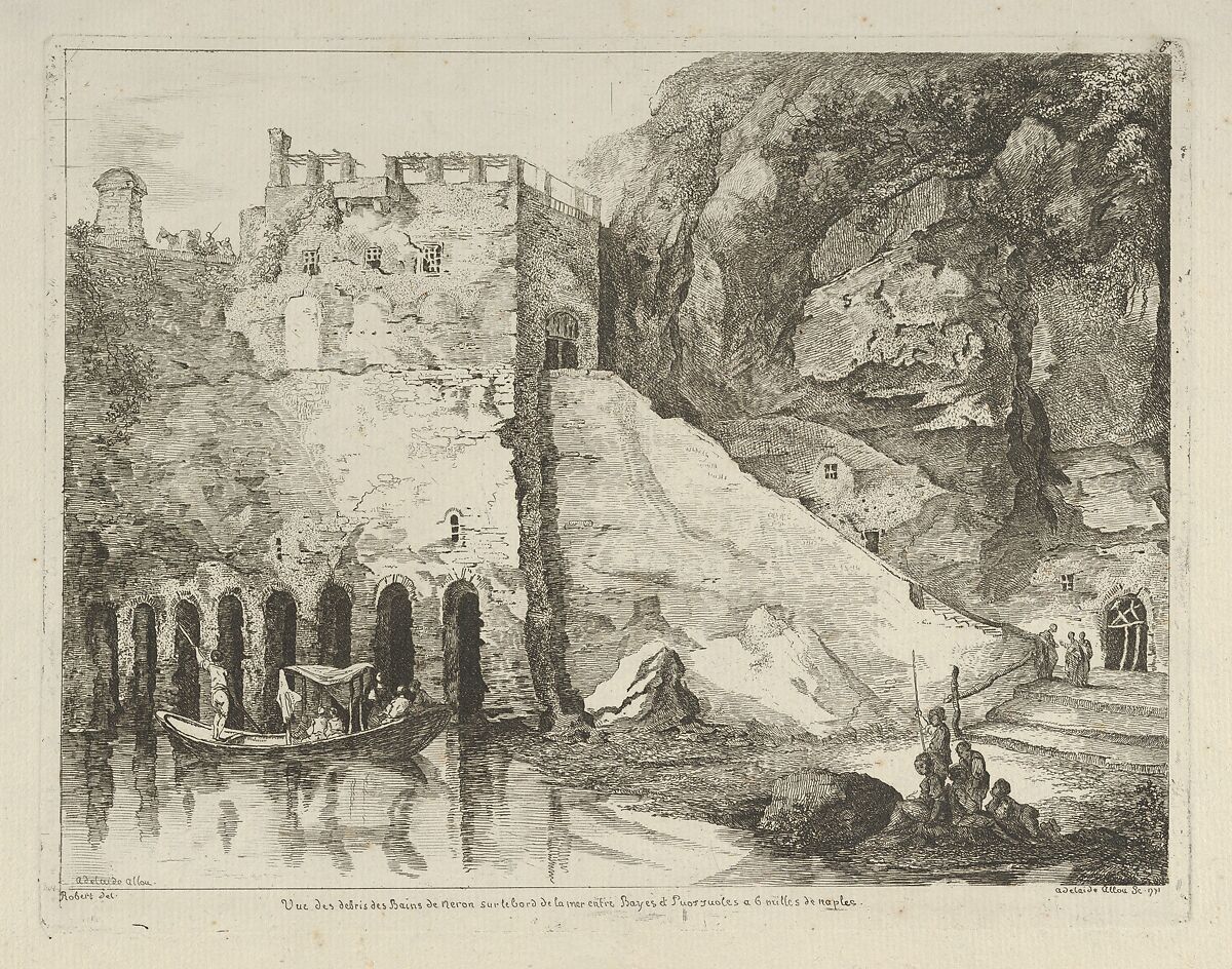 Vue des debris des bains de Neron from Differentes vues dessiné d'après nature... dans les environs de Rome et de Naples