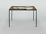 - Medium: Oil and graphite painting on canvas mounted on wood. Painting enclosed in a steel and glass table.