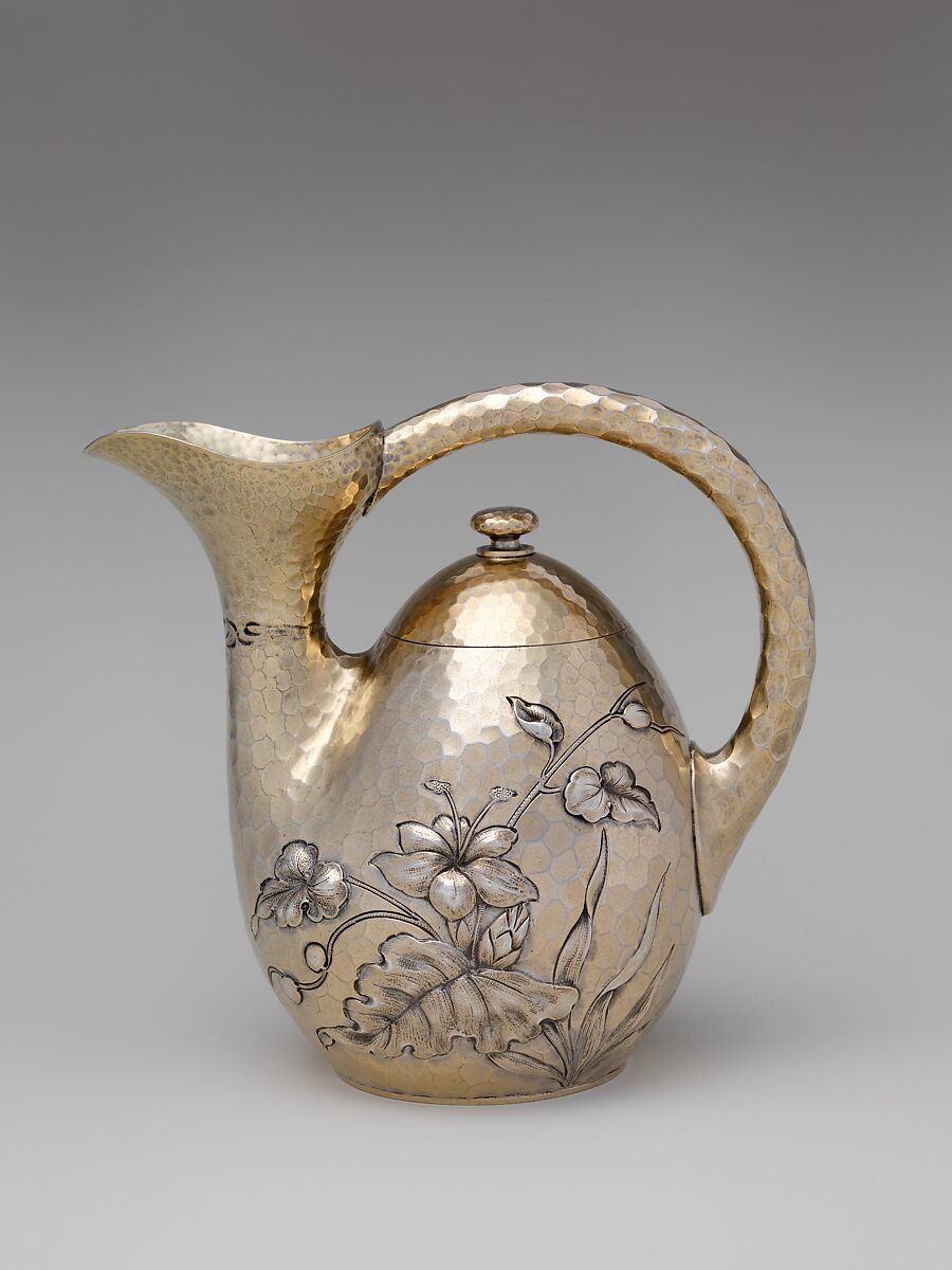 Dominck & Haff produced a diverse range of magnificently crafted silver and was an influential and defining force in the American silver industry. The exquisite ornament on this wine pot, in the form of a Greek askos, reveals the hand of a masterful chaser, likely the same craftsman who chased the silver and silver-gilt tureen retailed by Shreve, Crump and Low (2011.115). Exceptional among Dominick & Haff’s oeuvre, the small group of objects associated with this virtuosic chaser are some of the finest examples of American Aesthetic movement silver known.