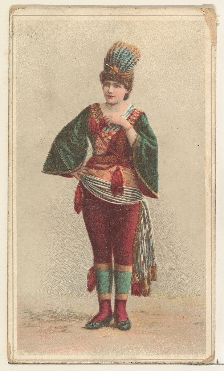 Actress wearing feathered headpiece, from Stars of the Stage, Second Series (N130) issued by Duke Sons & Co. to promote Honest Long Cut Tobacco