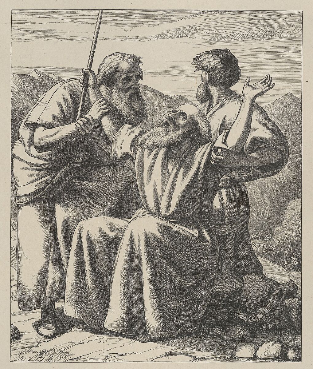 - Title: Moses' Hands Held Up, from "Dalziels' Bible Gallery"