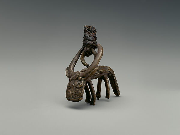 Among the Tussian peoples of Southwestern Burkina Faso, buffaloes are associated with ideas of leadership and prestige. Prominently featured on masks that relate to initiation into the important Do association, these animals can also be found adorning pendants and amulets, worn around the neck or belt.