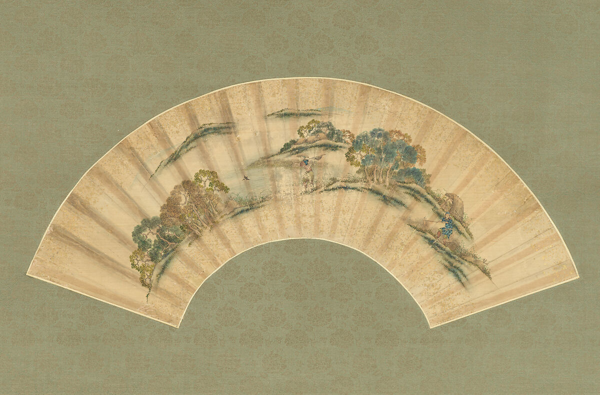 - Medium: Folding fan, remounted as a hanging scroll; ink and color on silk