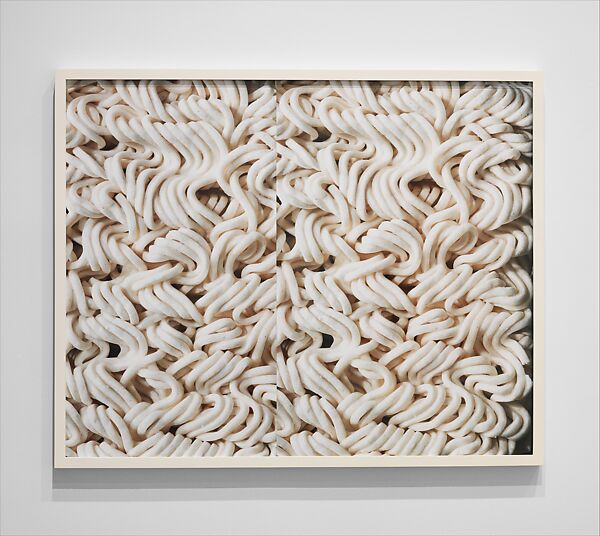Ethridge is known for his synthetic approach to photography, bridging the boundaries between the artistic and the commercial, the highbrow and the mundane, and playfully questioning the medium’s traditions and conventions. This photographic diptych takes a mundane subject— that dirt-cheap staple of college kids imported from Asia— and blows it up to monumental proportions. The flattening effect of the lens heightens the subject’s surface allure, and the doubling effect is a sly nod to the homogeneity of mass production and consumption.