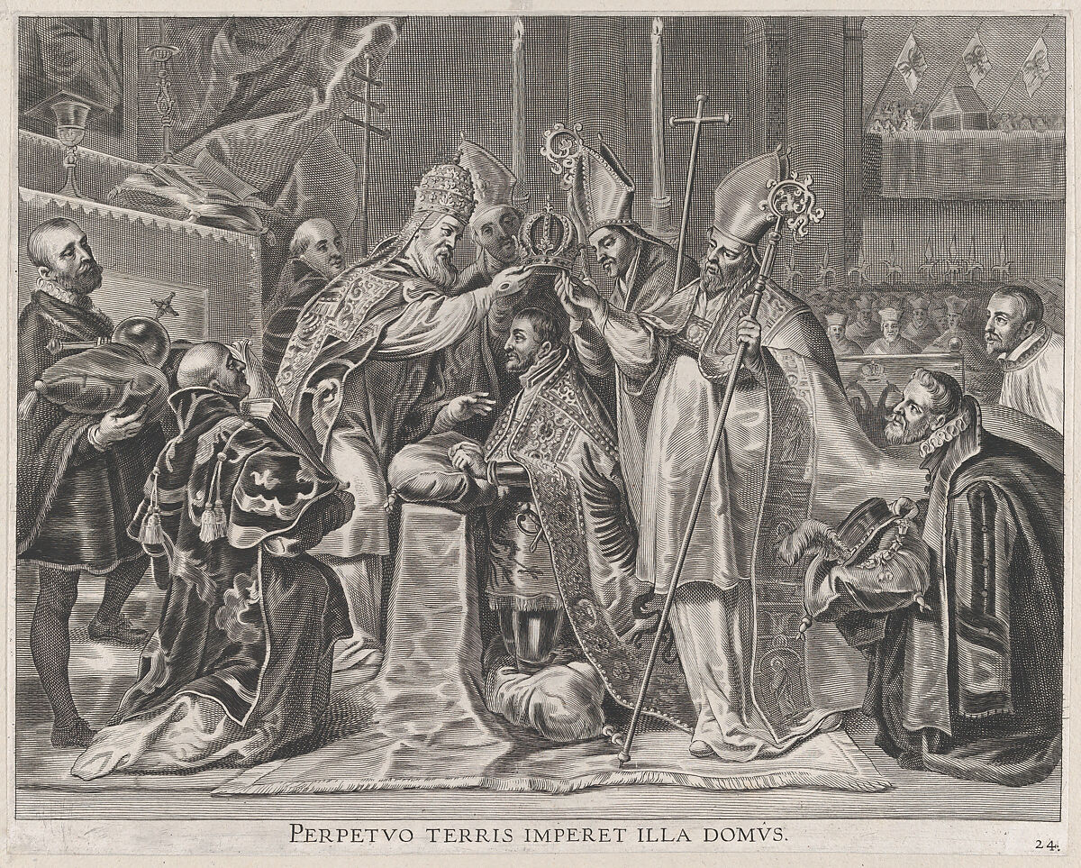 - Title: Plate 24: Charles V crowned Emperor by the Pope; from Guillielmus Becanus's 'Serenissimi Principis Ferdinandi, Hispaniarum Infantis...'