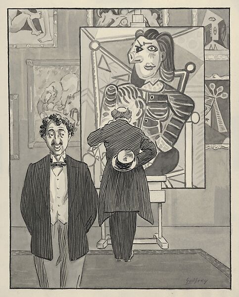 - Title: Caricature of Two Formally Dressed Men Visiting an Exhibition of Paintings by Picasso