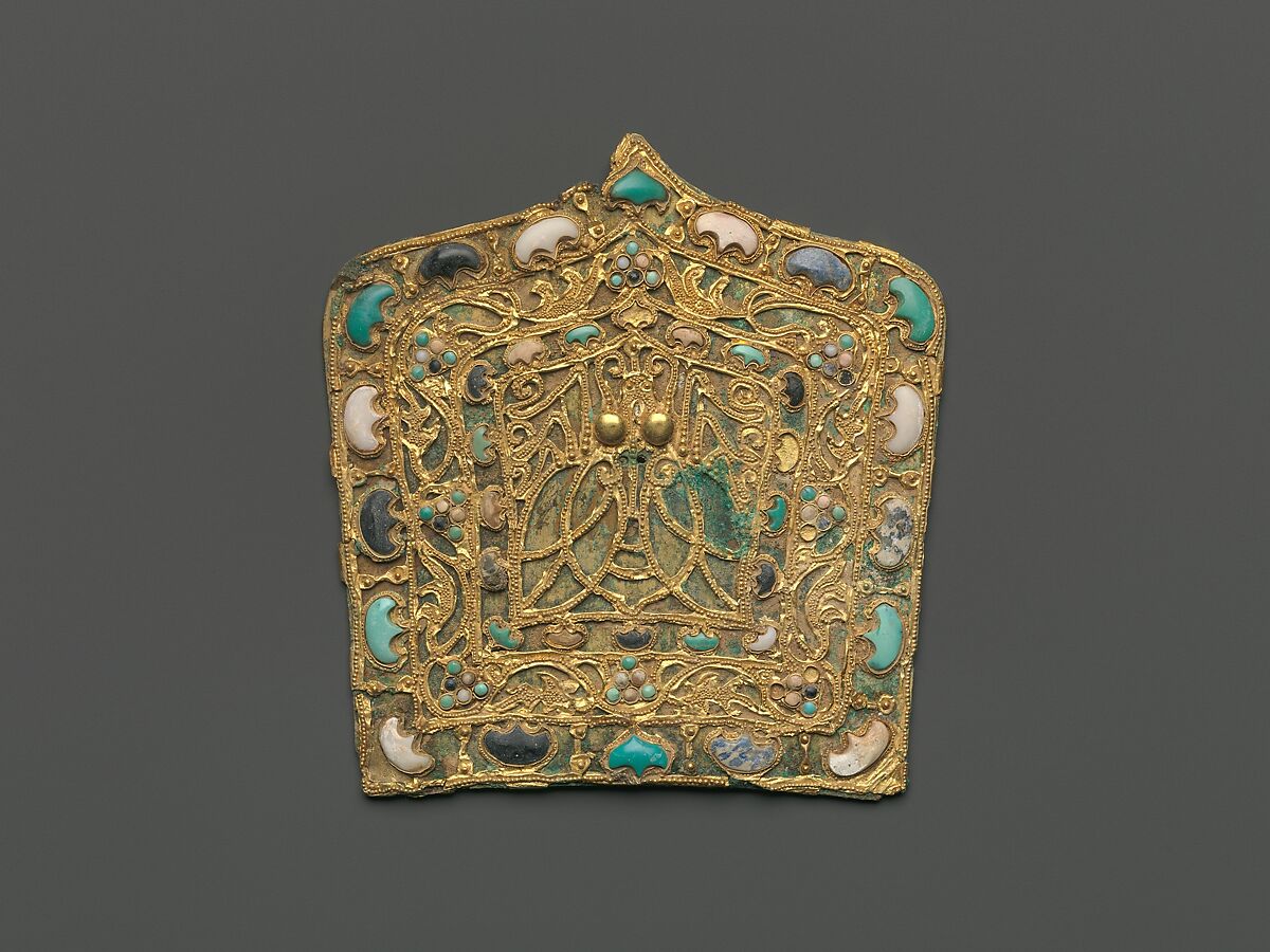 This plaque once decorated the hat of a government official. It features a cicada— an emblem of immortality—framed by semi-precious stones.