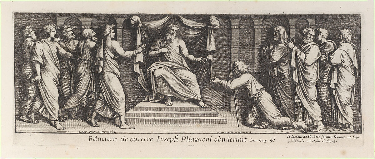 - Title: Joseph kneeling in front of the Pharoah, after Raphael's Stanza di Eliodoro, from a series of 15 plates, depicting Raphael's works for the Vatican stanze and the Sistine Chapel tapestries