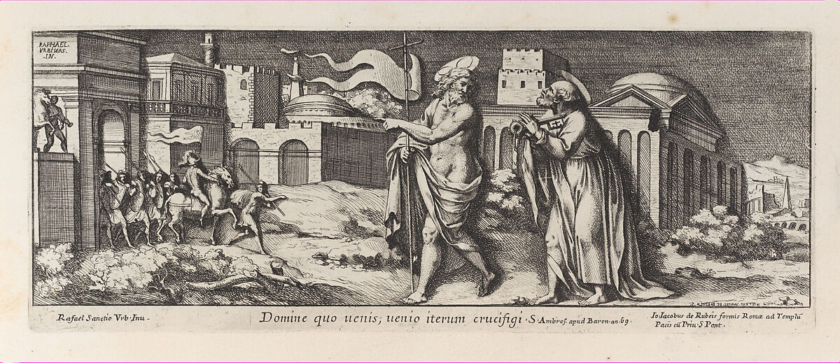 - Title: Christ appearing to Saint Peter after the Resurrection (Domine Quo Vadis), after Raphael's Stanza dell'incendio del Borgo, from a series of 15 plates, depicting Raphael's works for the Vatican stanze and the Sistine Chapel tapestries