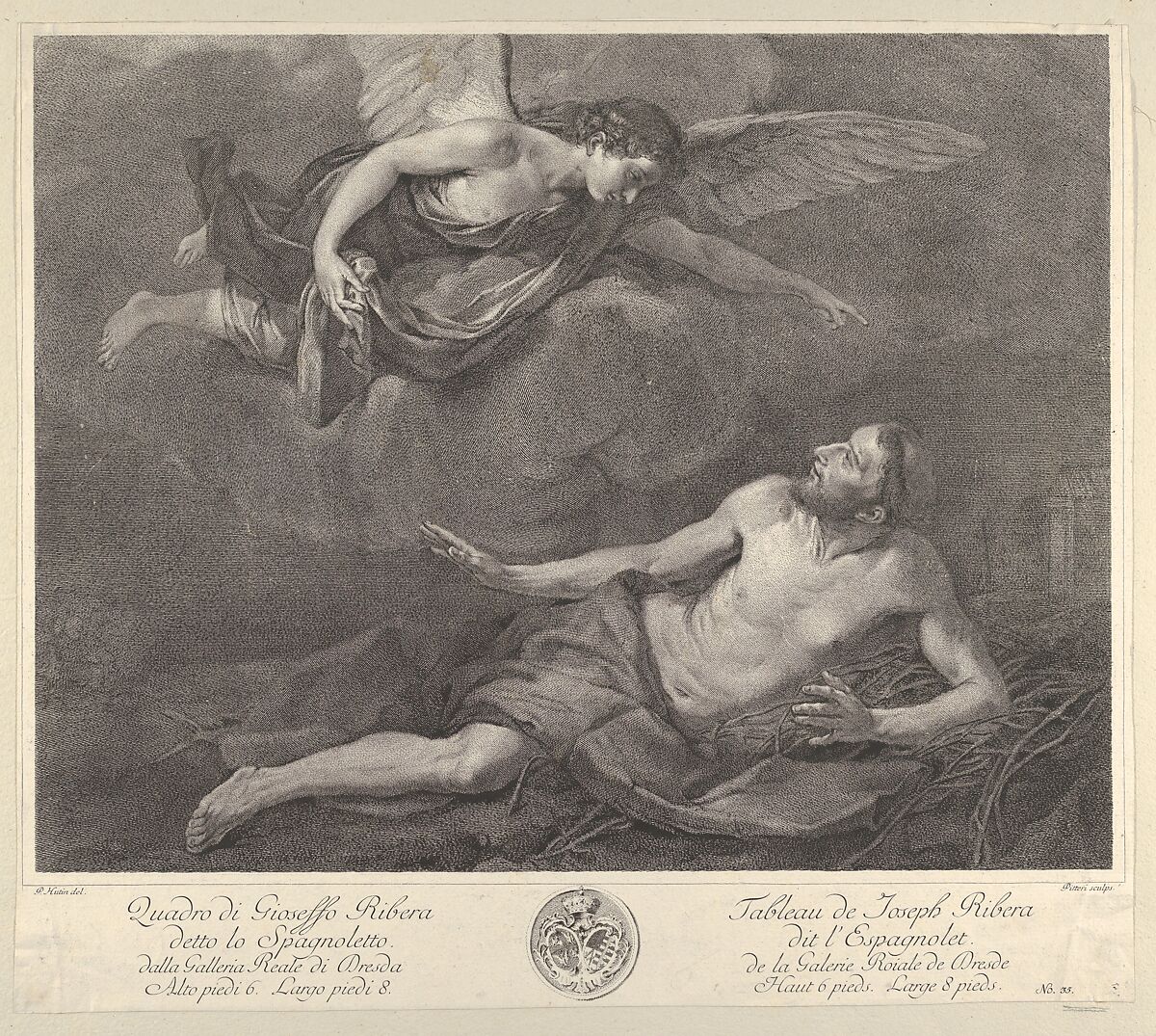 - Title: Saint Francis visited by the Angel, from 'Recueil d'estampes d'après les plus célèbres tableaux de la Galerie Royale de Dresde'