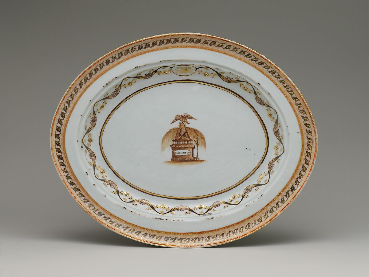 George Washington’s tomb is depicted on this platter, which exemplifies the patriotic affection and reverence for the country’s leaders that arose after the Revolutionary War.