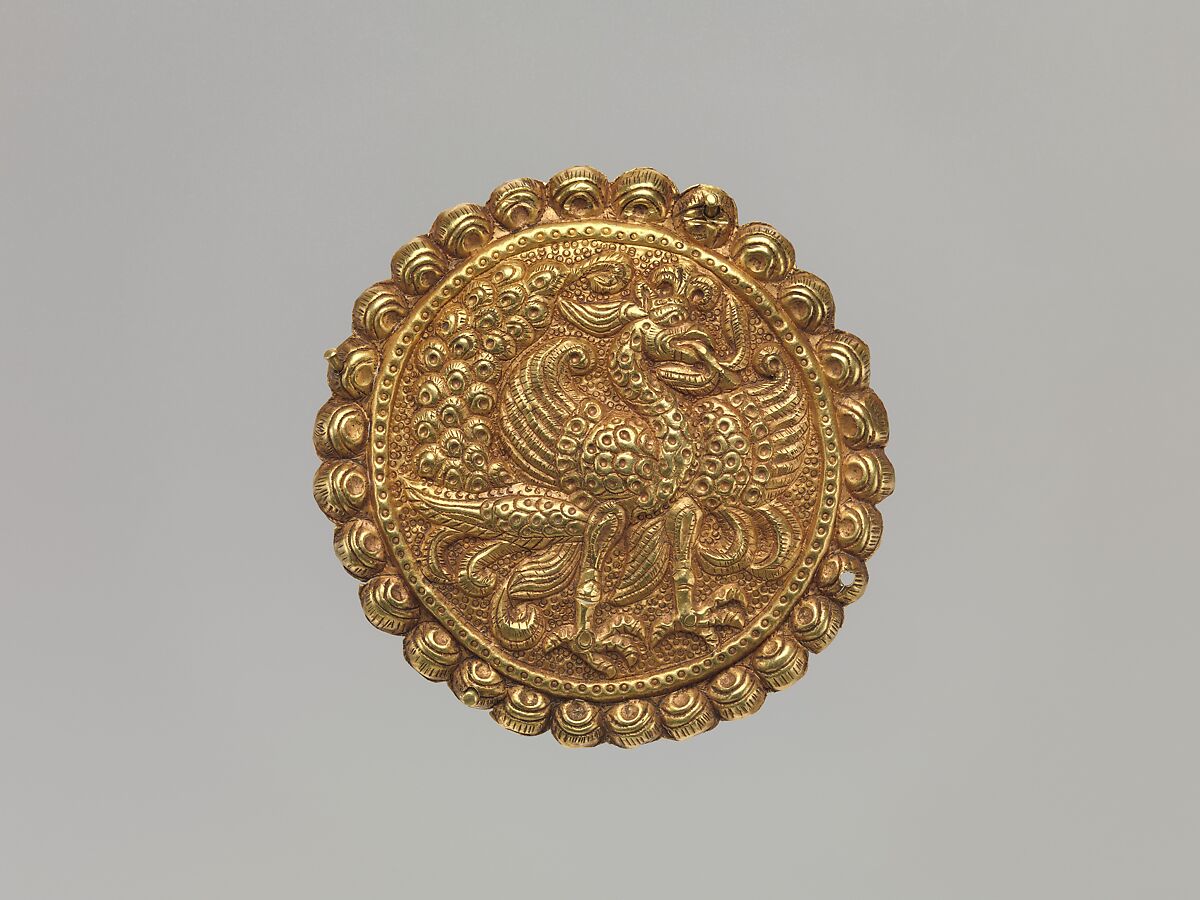 The nomadic communities of Central Asia used such plaques to embellish clothing and horse trappings. As these nomadic cultures herded animals and were constantly moving, their artistic production was expressed in portable objects that marked the wearer’s status and wealth. The outstanding preservation of these fragile ornaments suggests they were used in conjunction with burials, where the body was aggrandized with valuable textiles and augmented with gold. Although it is difficult to date and place these objects geographically, their presence in Central Asia and has a long, established history.