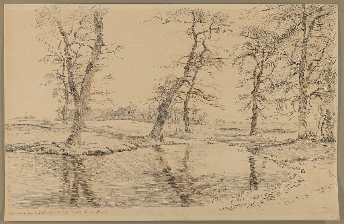 - Title: A Brook near a Farm in Usserød with Cows and Two Figures