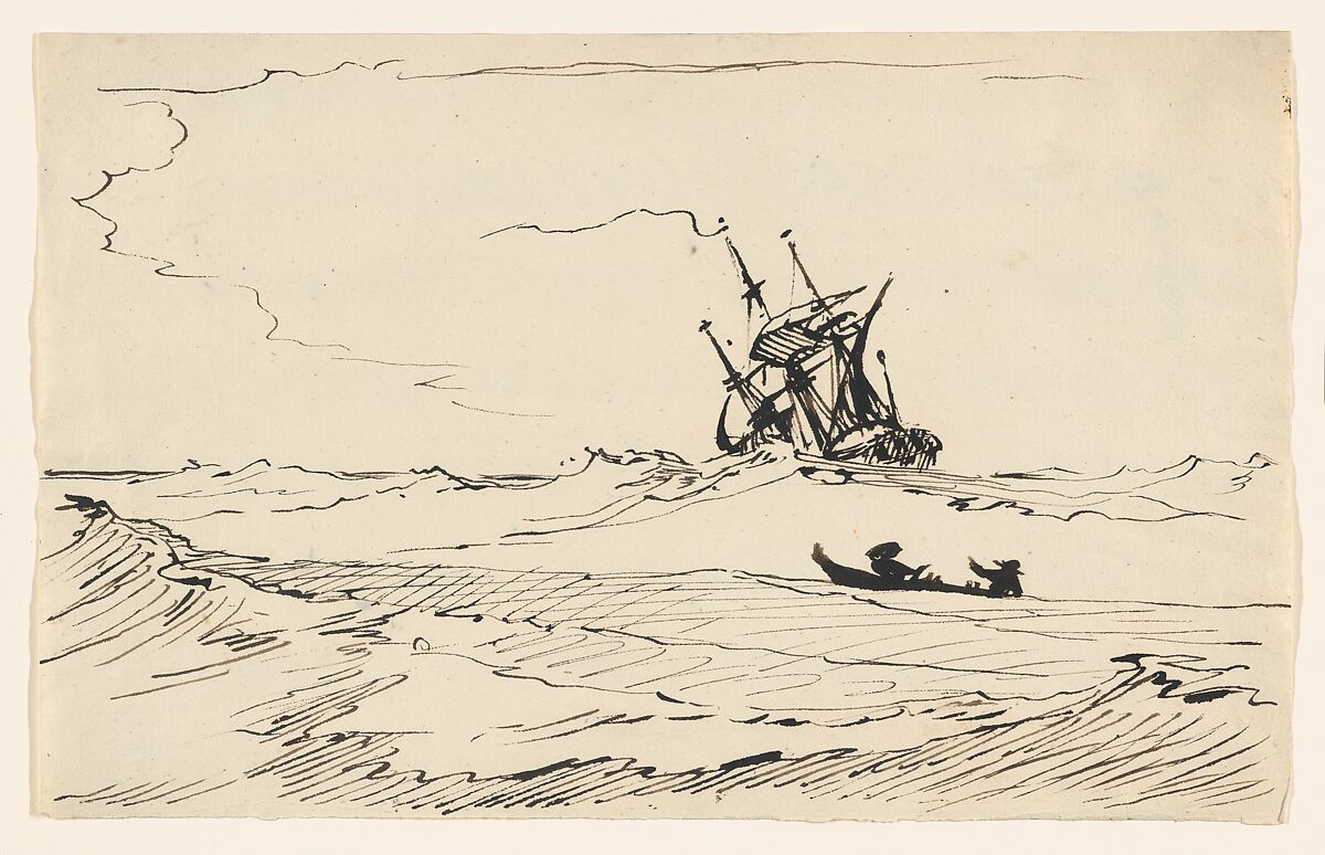 - Title: A Storm at Sea with a Large Ship and a Small Boat with Two Figures