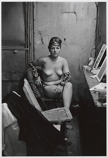 - Title: Stripper with bare breasts sitting in her dressing room, Atlantic City, N.J.