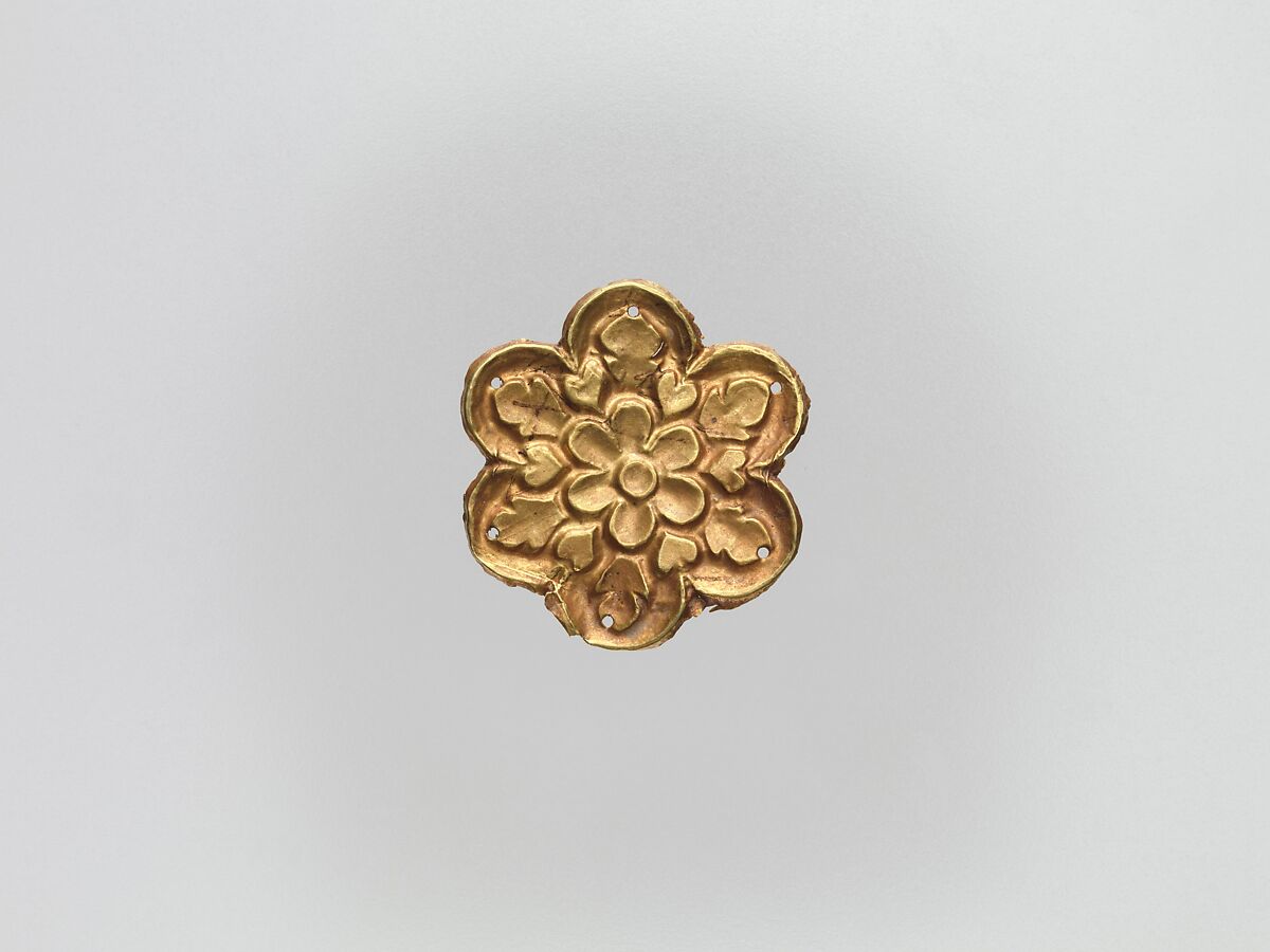 The nomadic communities of Central Asia used such plaques to embellish clothing and horse trappings. As these nomadic cultures herded animals and were constantly moving, their artistic production was expressed in portable objects that marked the wearer’s status and wealth. The outstanding preservation of these fragile ornaments suggests they were used in conjunction with burials, where the body was aggrandized with valuable textiles and augmented with gold. Although it is difficult to date and place these objects geographically, their presence in Central Asia and has a long, established history.