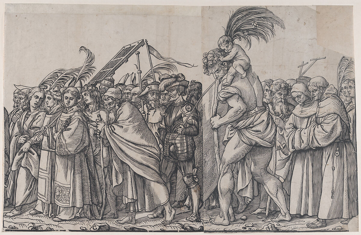 This print is from a scrapbook (album) containing woodcuts and chiaroscuro prints. It was presumably taken apart when it was acquired by The Met in 1922. On the front page of the volume there appeared a statement that this collection was made by the poet Samuel Rogers (1763-1855) and then bought by Angela Coutts (1816-1906) in memory of him at the sale of the collection at his house (28 April – 20 May, 1856). #1615a Rogers Sale. #146 Burdett Coutts Sale (Sotheby’s, May 1922). The prints from the original album have the range 22.73.3-1–22.73.3-161.