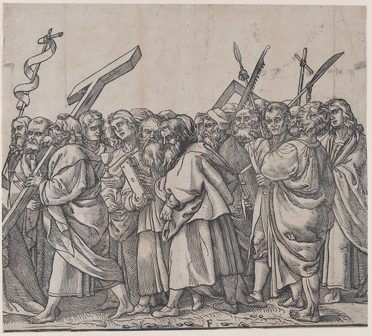 - Title: Section F: Saints holding crosses, books, and weapons, from "The Triumph of Christ"