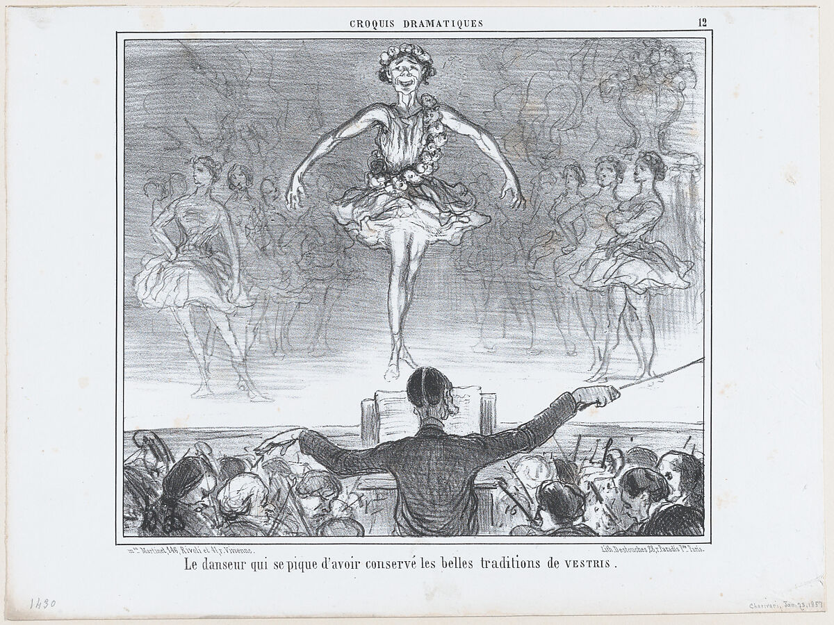 - Title: Le danseur qui se pique d'avoir conservé..., from Croquis Dramatiques, published in Le Charivari, January 23, 1857