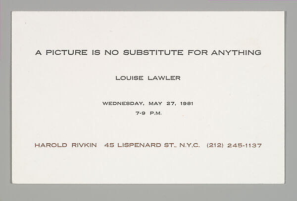 - Title: [Announcement for "A Picture Is No Substitute For Anything", Harold Rivkin, New York City]