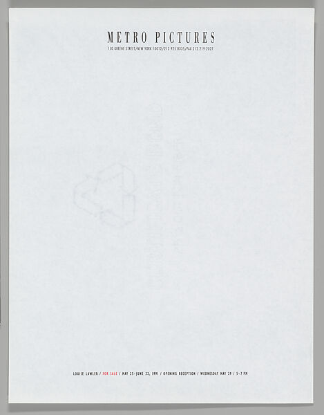 - Title: [Announcement for "For Sale", Metro Pictures, New York City]