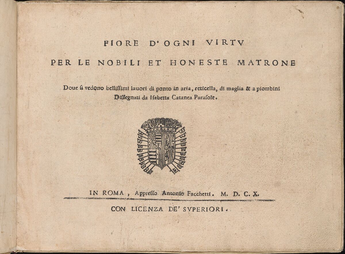 - Title: Fiore D'Ogni Virtu Per le Nobili Et Honeste Matrone, title page (recto)