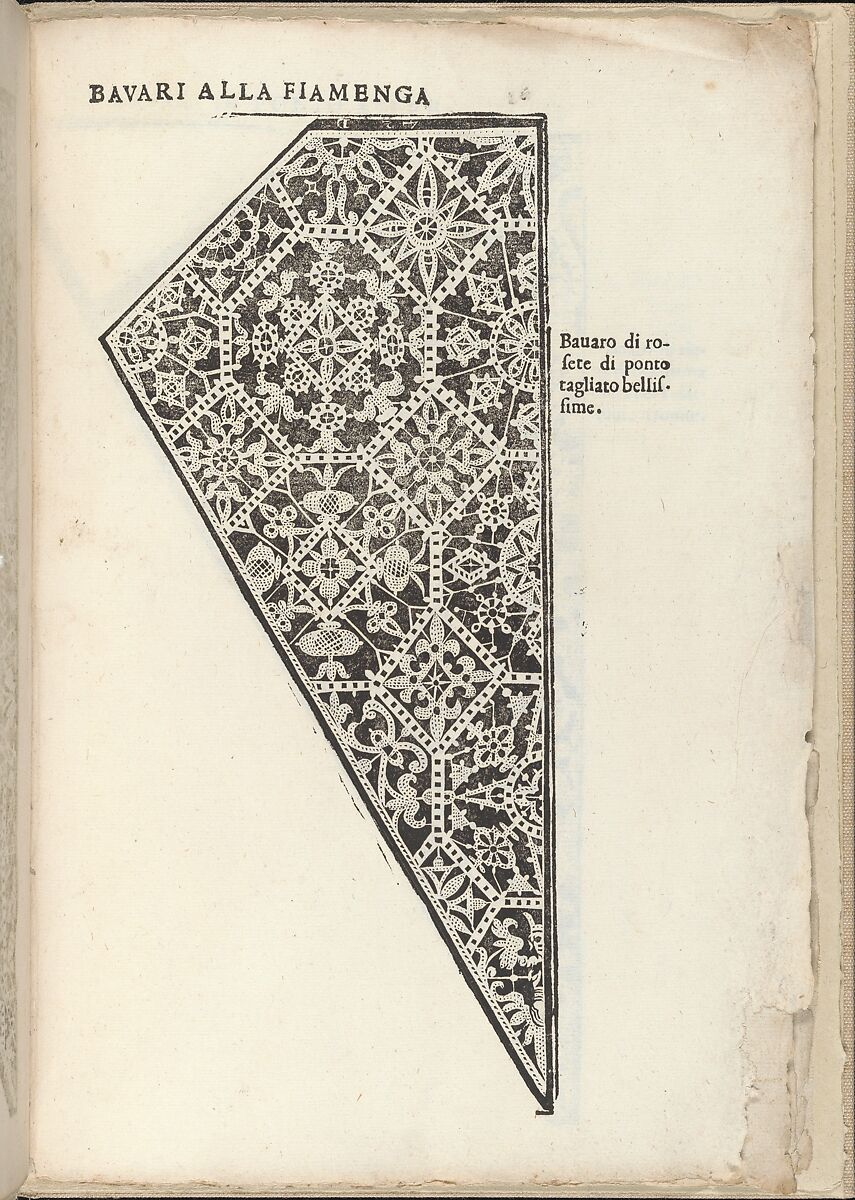- Title: Ornamento nobile...Fatta da Lucretia Romana (Libro V of the Corona), page 12 (recto)