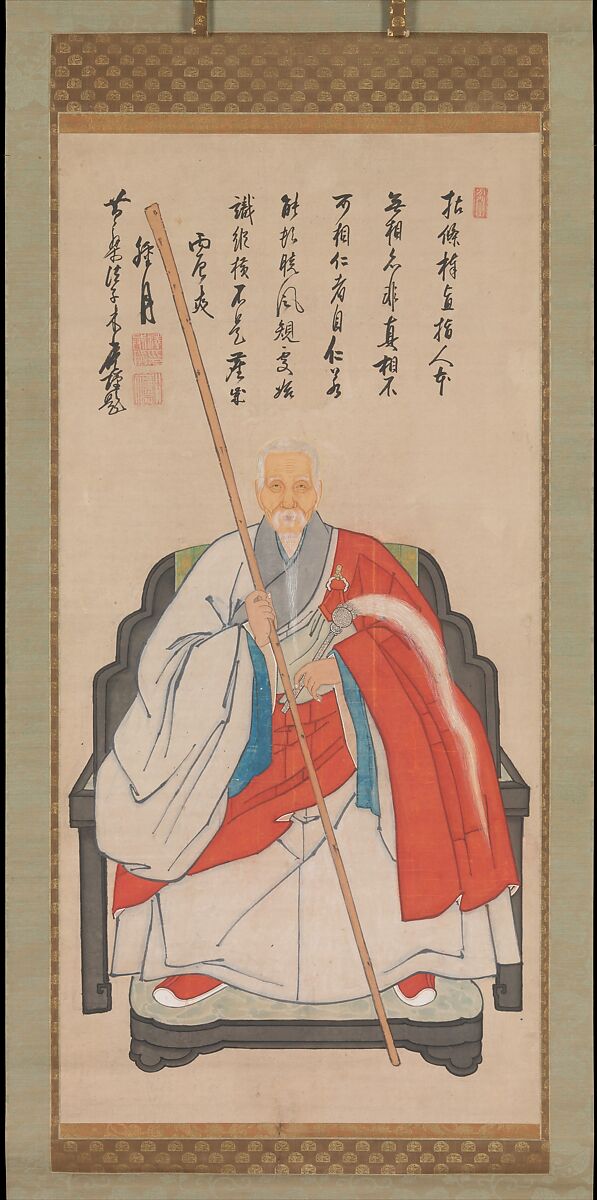 This portrait depicts Yinyuan Longqi, the Chinese Chan master who, in 1661, founded the Manpukuji Temple outside Kyoto. Likenesses such as this one would have been displayed and venerated during Buddhist ceremonies and memorial services. The eulogistic inscription is by Yinyuan’s direct disciple Mu’an Xingtao, whose celebrated calligraphy recalls both the religious and the brush-writing mentorship of his master. It reads: