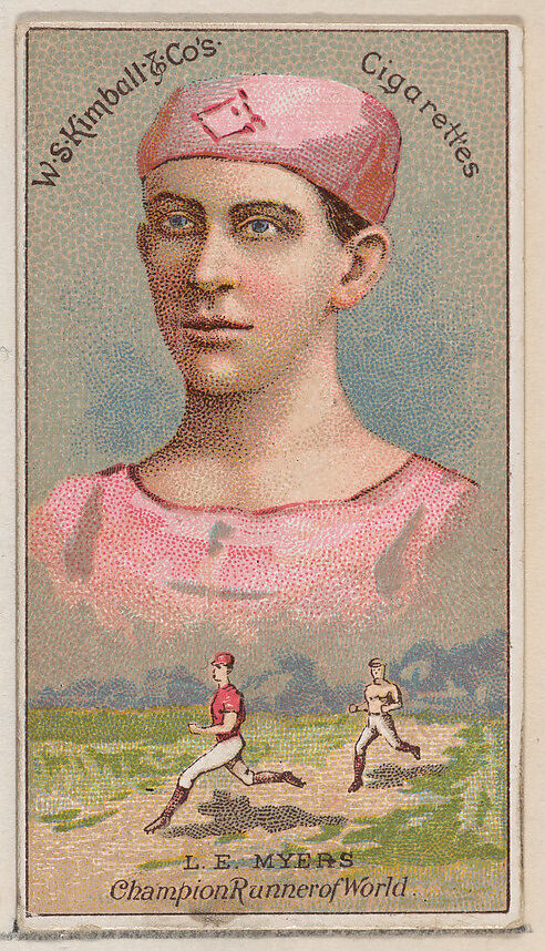 - Title: L.E. Myers, Champon Runner of the World, from the Champions of Games and Sports series (N184, Type 1) issued by W.S. Kimball & Co.