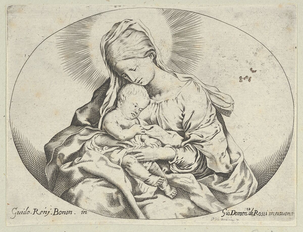 - Title: The Virgin holding the infant Christ, an oval composition, after Reni