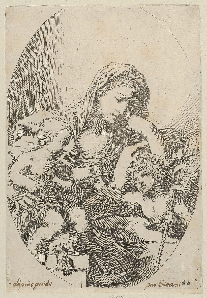 - Title: The Virgin with the Christ Child and the young Saint John the Baptist holding a bird at right, an oval composition