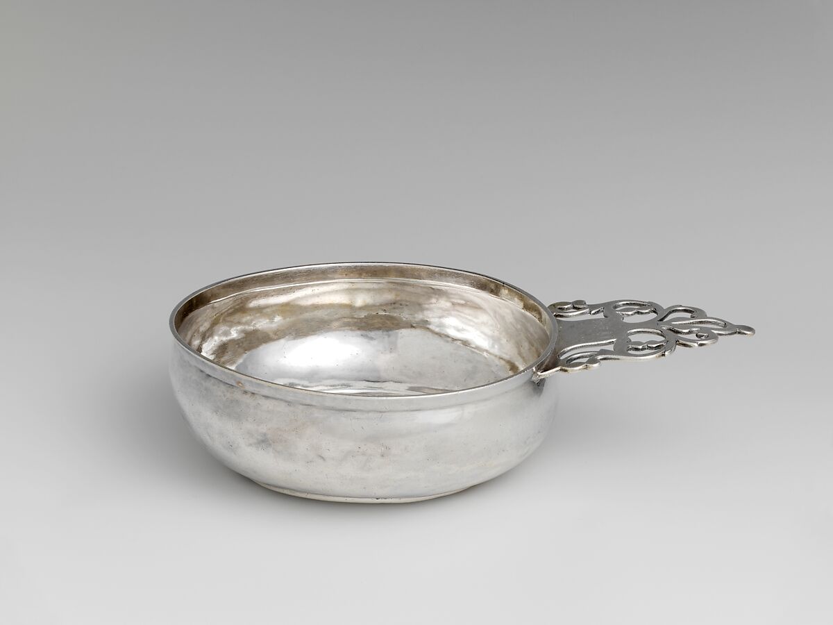 It is believed that this porringer belonged to Mary Whipple Holyoke, (1699–1790), wife of President Holyoke of Harvard. At her death she left the porringer to her husband's granddaughter, Mary Holyoke Pearson, (1782–1829). She married the Reverend Ephraim Abbott in 1813, and the porringer descended to the child he bore with his second wife, George E. H. Abbott of Groton, Massachusetts, from whom it came to the donor.