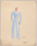 Drawing, design for a man's costume, part of a group of 88 costume designs by Vincente Minnelli. The costume consists of light blue pajamas with belted waistband.