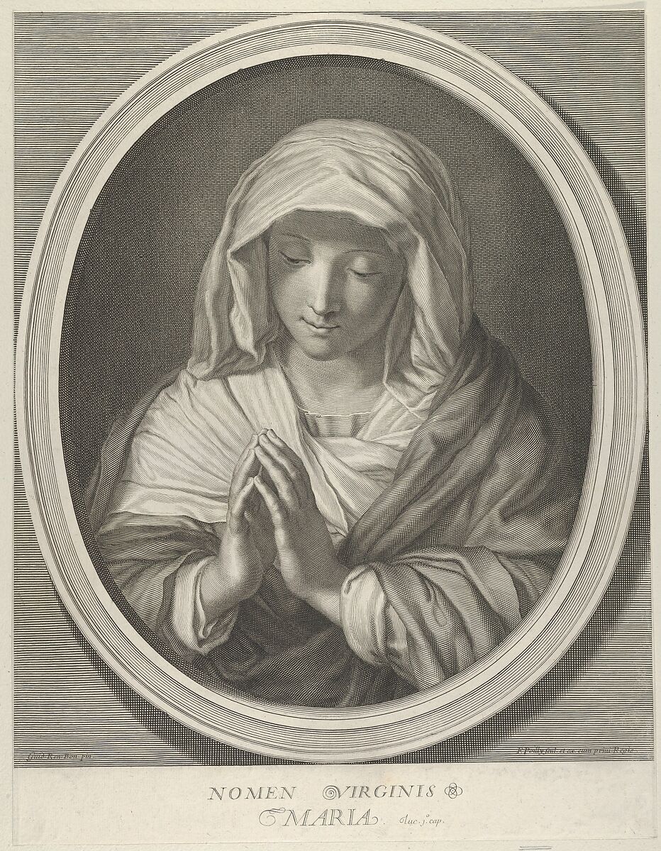- Title: The Virgin in prayer looking down, in an oval frame, after Reni