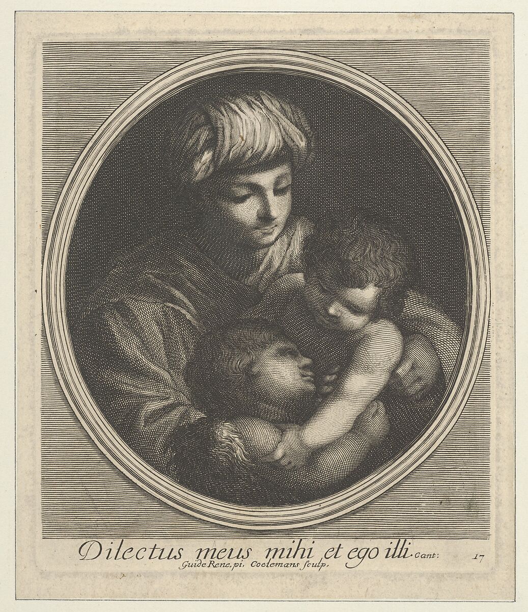 - Title: The Virgin with the infant Christ and the young Saint John the Baptist, in a circular frame, after Reni