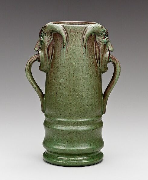 - Medium: Stoneware; allover mat green glaze with darker areas