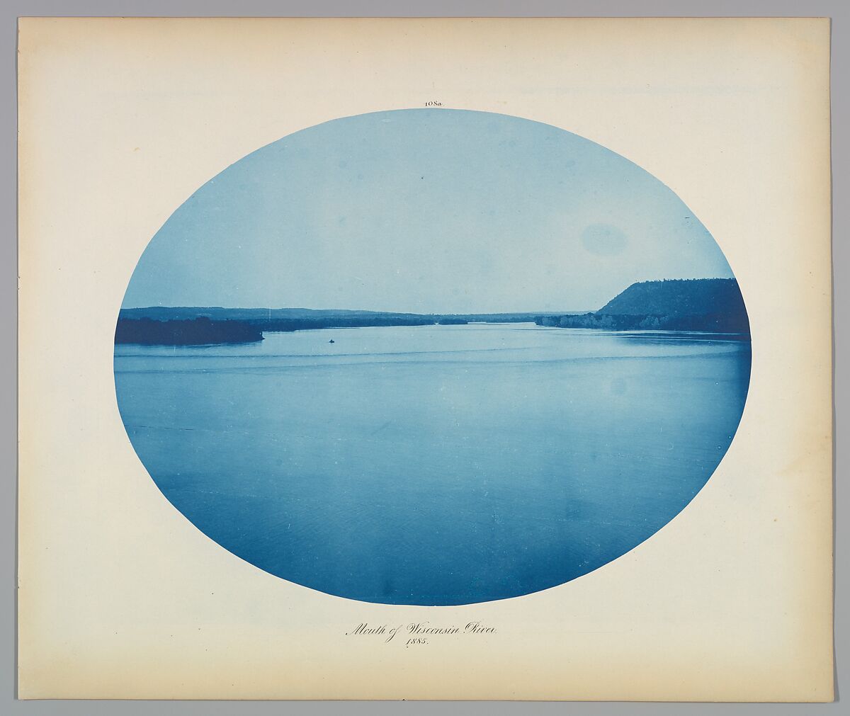 of ten years, he documented its meandering path under the dome of the Midwestern sky. His choice of the cyanotype—the same process used until recently by architects to duplicate their line drawings—was likely one of economy, as the materials were readily available to draftsmen. While many of his photographs document the interplay between the natural and the manmade, in this tranquil image, Bosse emphasizes sky and water, evoking the immensity and utter expansiveness of a subject that seems to have no bounds.