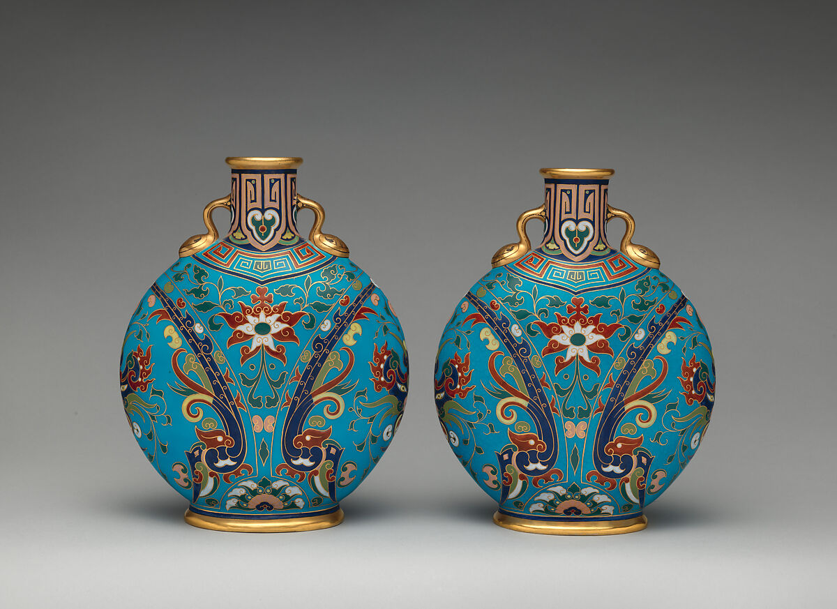 These flask vases are examples of Christopher Dresser’s Asian-inspired Minton "cloisonné" ware.