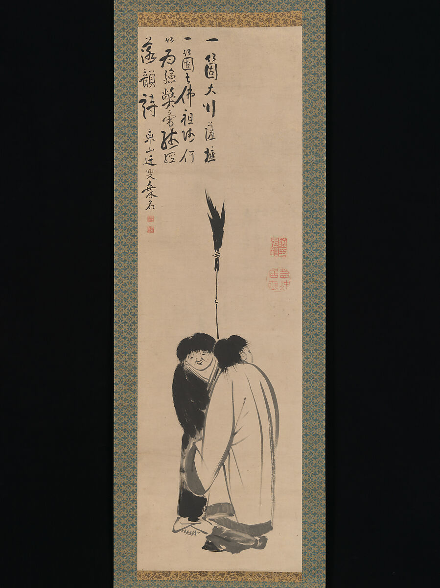 - 伊藤若冲筆 伝池大雅賛 寒山拾得 「 一箇大行薩埵、 一箇大佛袒師、 何以為驗 弊帚、殘經落韻詩」