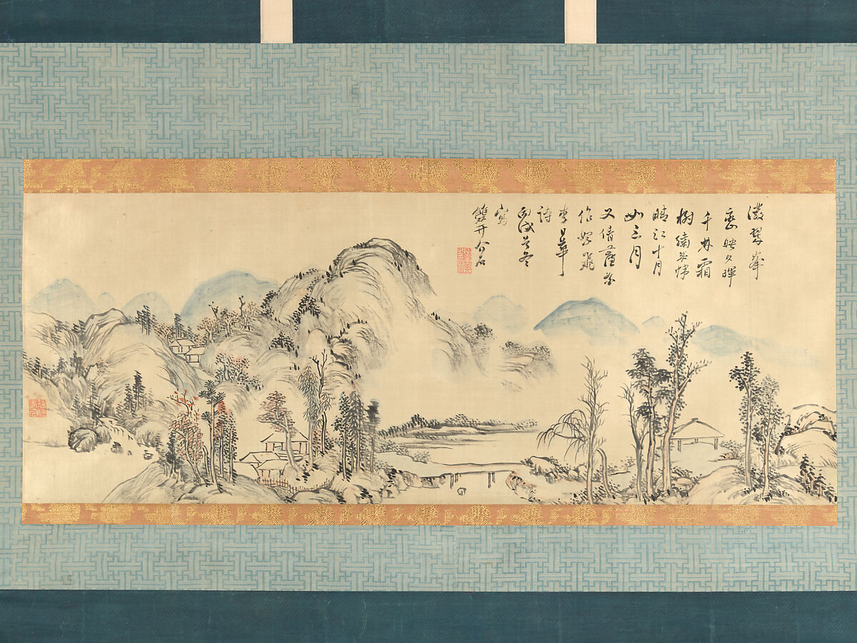 - Medium: Handscroll section mounted as a hanging scroll; ink and color on silk