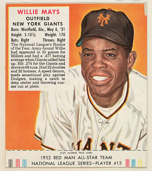 - Title: Willie Mays, from the Red Man All-Star Team series (T232), issued by Red Man Chewing Tobacco