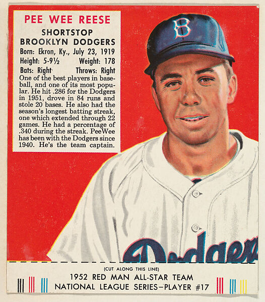 - Title: Pee Wee Reese, from the Red Man All-Star Team series (T232), issued by Red Man Chewing Tobacco