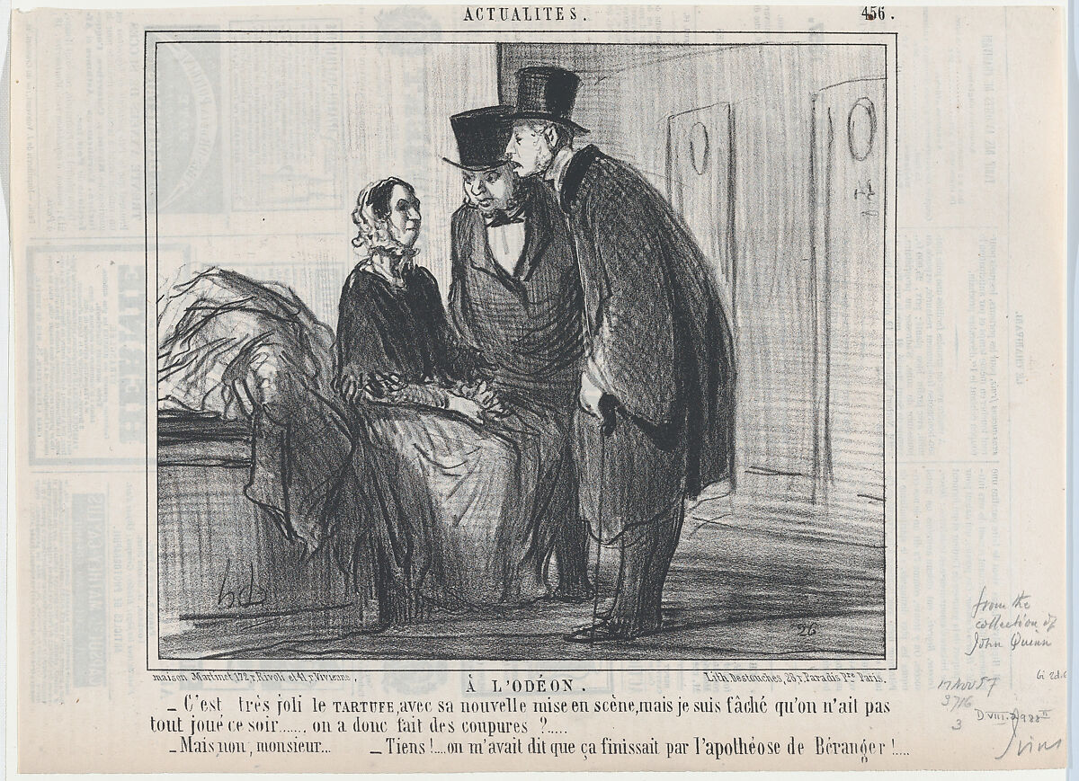 - Title: À L'Odéon, from Actualités, published in Le Charivari, November 17, 1857
