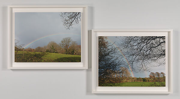 Graham’s series, Does Yellow Run Forever?, juxtaposes three groups of photographs: rainbows arcing over the Irish countryside, the facades of pawn-and-jewelry shops in New York, and tender studies of his partner asleep. The thematic links between the images (the rainbow’s mythical pot of gold, the sparkling objects in the Harlem window display, and a sleeping dreamer) may seem obvious, even pat, but Graham’s photographs transmute those clichés into a constellation of deep feeling. These luminous vignettes evoke a sense of longing and pathos, the quest for something permanent amid the illusory and devalued.