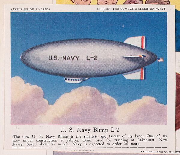 - Title: U. S. Navy Blimp L-2, collector card from the Airplanes of America series (D2), issued by the Kelley Baking Company to promote Kelley's Bread