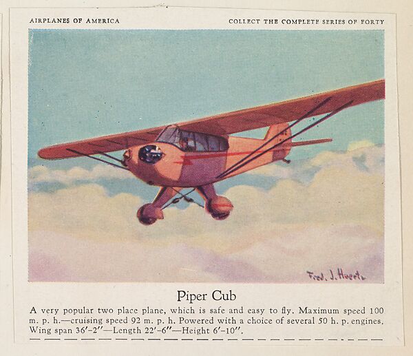 - Title: Piper Club, collector card from the Airplanes of America series (D2), issued by the Kelley Baking Company to promote Kelley's Bread