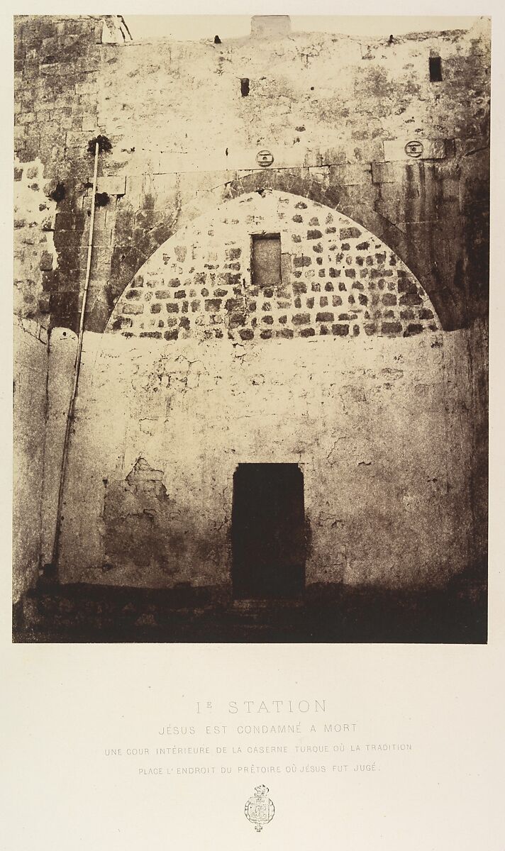 - Title: Ie Station. Jésus est condamné à mort. Une cour intérieure de la caserne turque où la tradition place l'endroit du prêtoire où Jésus fut jugé