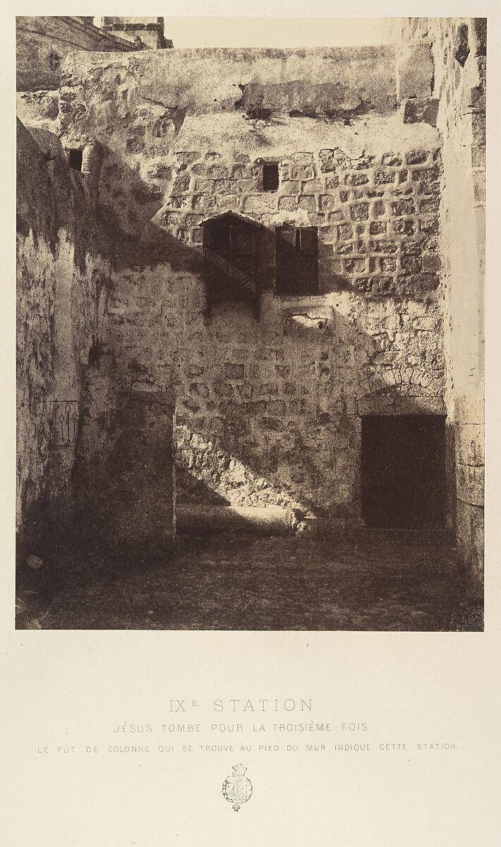 - Title: IXe Station. Jésus tombe pour la troisième fois. Le fut de colonne qui se trouve au pied du mur indique cette station.