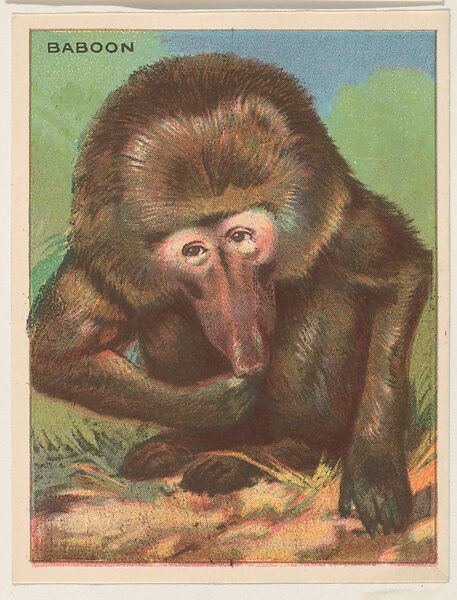 Baboon, collector card from the Animals series (D9), issued by the Weber Baking Company to promote Onist Milk and Pullman Bread; 80 cards in series. These cards were also published as the Animals series (T29) by Hassan Cigarettes. (Album 307, page 21)
