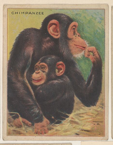 Chimpanzee, collector card from the Animals series (D9), issued by the Weber Baking Company to promote Onist Milk and Pullman Bread